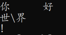 printf("你\t好\n,\b世\\界\v!"); //\t:TAB,\n:换行,\b:退格,\\:反斜杠,\v:垂直制表符