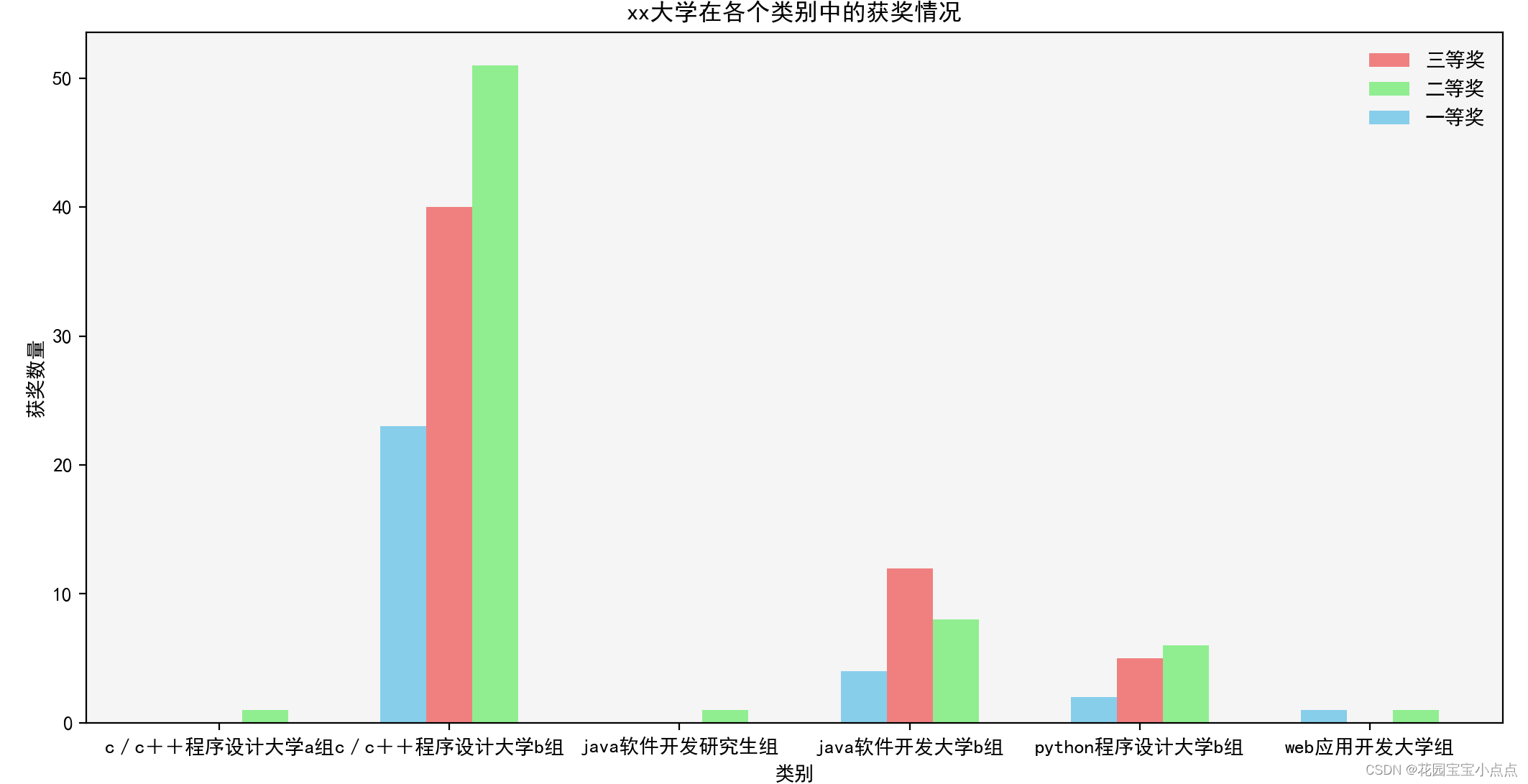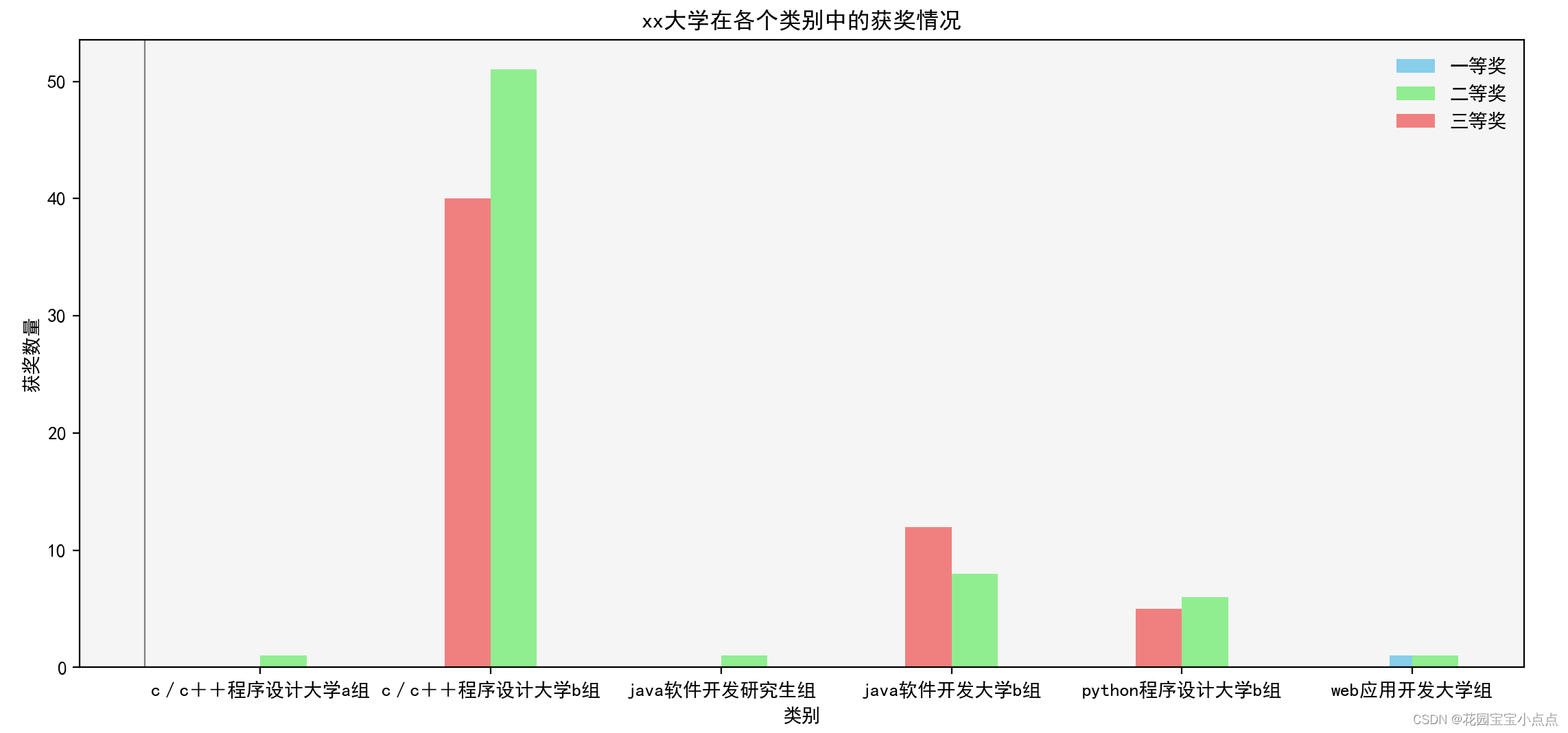 # 直方图展示xx大学在各个类别中的获奖情况