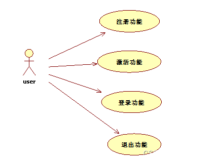 用户模块包括:注册功能、激活功能、登陆功能、退出功能