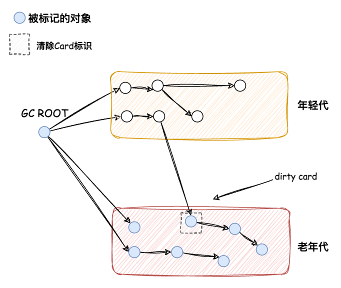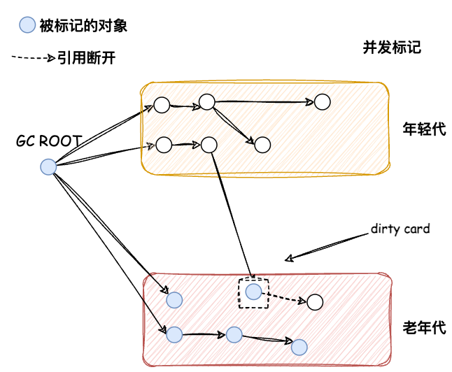 当应用线程试图修改老年代的某个对象引用时,把这些发生变化的对象所在的Card标识为Dirty,这样后续就只需要扫描这些Dirty Card的对象,从而避免扫描整个老年代。