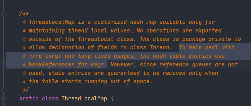 而如果我们使用WeakReference作为key。这意味着当对ThreadLocal实例的所有强引用都被垃圾收集器清除后,它的entry(包括value)也可以从ThreadLocalMap中清除,防止了潜在的内存泄漏。