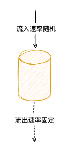 说到漏桶算法的时候,我们脑中先构思出一幅图:一个水桶,桶底下有一个小孔,水以固定的频率流出,水龙头以任意速率流入水,当水超过桶则「溢出」。