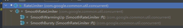 RateLimiter是个抽象类,子类SmoothRateLimiter又做了层抽象,SmoothRateLimiter有两个子类SmoothBursty和SmoothWarmingUp。