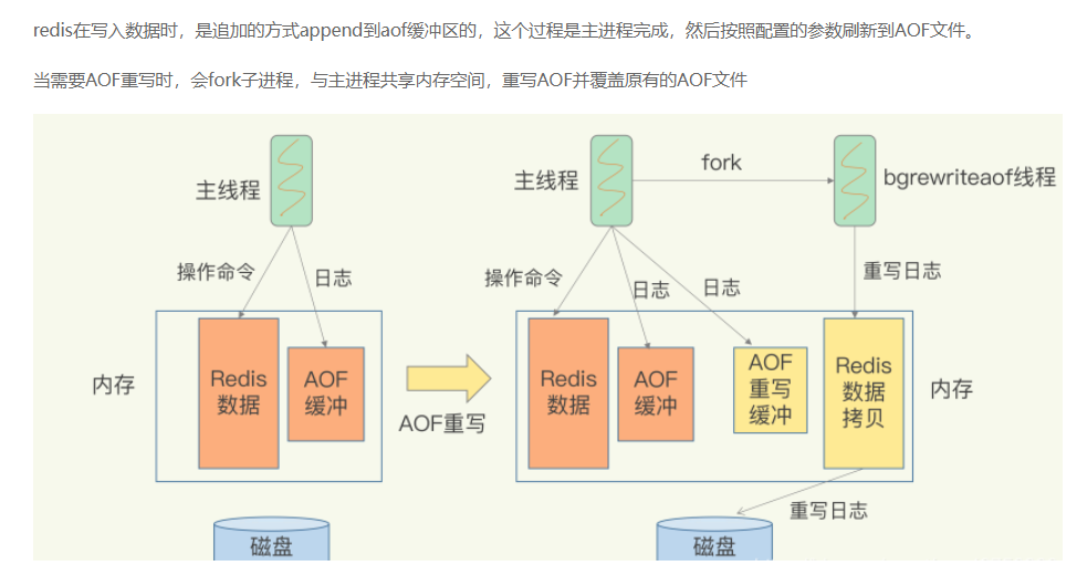 AOF重写缓冲区是一个用于执行AOF文件的重写操作的缓冲区。AOF重写操作是一种将现有AOF文件重写成最小化的新AOF文件的操作。AOF重写操作的目的是减少AOF文件的大小,同时加快恢复速度。AOF重写缓存区在AOF重写时开始启用,Redis服务器主进程在执行完写命令之后,会同时将这个写命令追加到AOF缓冲区和AOF重写缓冲区。