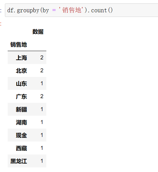 直接df['销售地'].value_counts(ascending=True)或者使用【哎呦喂 是豆子~】提出的df.groupby(by = '销售地').count()