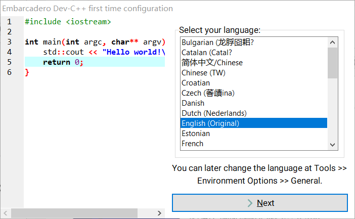 第一次配置,选择语言