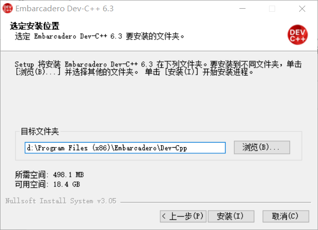 修改安装路径为D盘d:\Program Files (x86)\Embarcadero\Dev-Cpp,点击安装