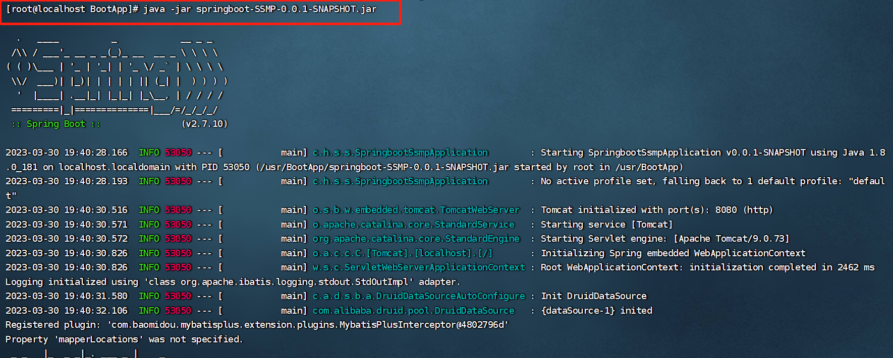 前台启动Boot工程:java -jar springboot-SSMP-0.0.1-SNAPSHOT.jar