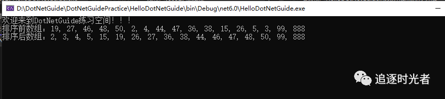 Console.WriteLine("排序前数组:" + string.Join(", ", array));