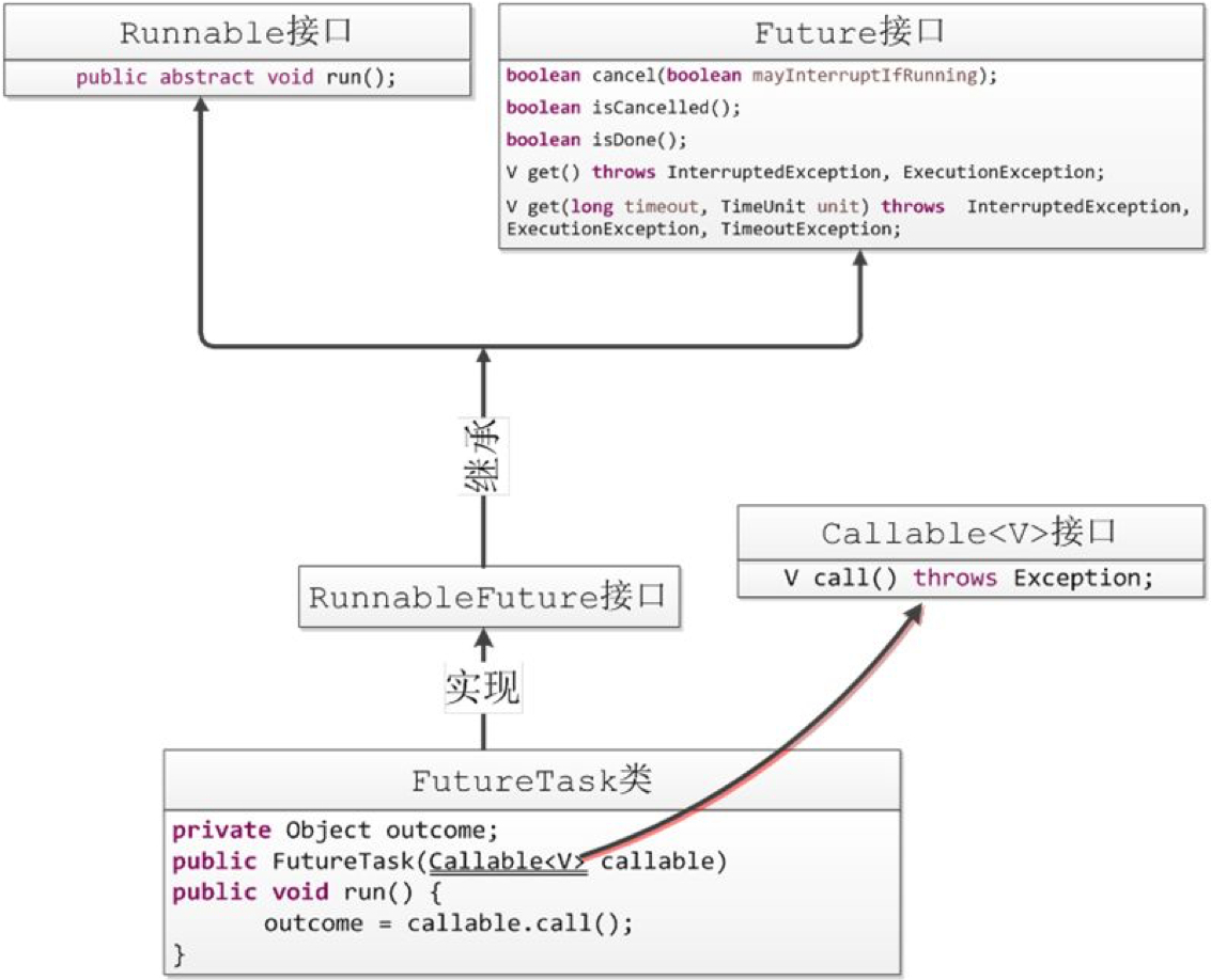 以上是Future的基本结构,RunnableFuture继承了Future和Runnable接口,FutureTask可以接收一个Callable实例作为运行的任务。