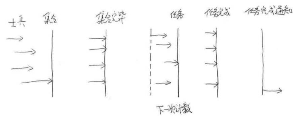 注意屏障是可以重复使用的,当所有等待线程被释放后可以被重用。