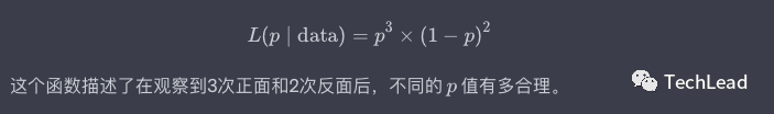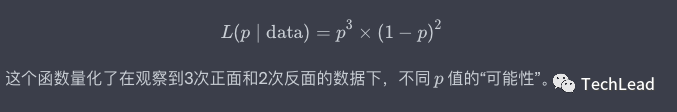 若我们观察到了3次正面和2次反面,似然函数可以写作: