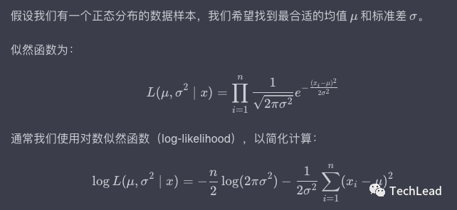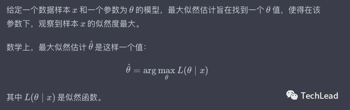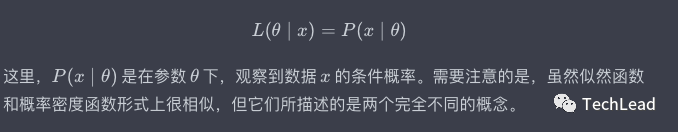 本文深入探讨了似然函数的基础概念、与概率密度函数的关系、在最大似然估计以及机器学习中的应用。通过详尽的定义、举例和Python/PyTorch代码示例,文章旨在提供一个全面而深入的理解。 关注TechLead,分享AI全维度知识。作者拥有10+年互联网服务架构、AI产品研发经验、团队管理经验,同济本复旦硕,复旦机器人智能实验室成员,阿里云认证的资深架构师,项目管理专业人士,上亿营收AI产品研发负责人。