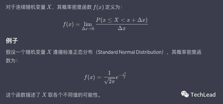 概率密度函数描述了一个连续随机变量在各个特定值上的“密度”,也就是该值出现的相对可能性。对于离散随机变量,这个概念被称为概率质量函数(Probability Mass Function, PMF)。