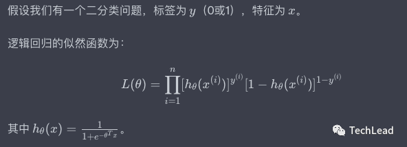 在监督学习中,特别是用于分类问题的逻辑回归模型,最大似然估计用于优化模型的参数。逻辑回归模型试图找到一个函数,使得给定输入特征下某一类别出现的“可能性”最大。