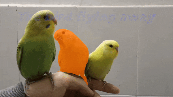 在下面的 MeViS 视频中,出现了三只外观非常相似的鸟。通过颜色、形状等静态特征很难描述这些目标物体,因此在这种场景下, 传统的语言-图像分割模型面临巨大挑战 。然而,通过描述“飞走的那只鸟”等动态特征,却能轻松准确地捕捉目标物体的特点。这突显了动态特征描述在视频理解中的实用性、必要性和重要性 。