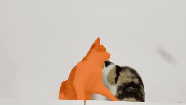 图 1给定一段视频和一个描述动作的句子“玩逗猫棒的那只猫”,MeViS要求找到并分割这只猫