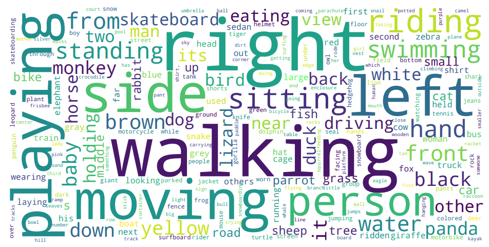 图 2 MeViS中包含大量描述动态属性的单词,如walking, moving, playing等