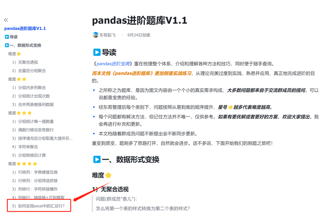最近群里小伙伴提出了几个问题,如何用pandas实现execl中的汇总行。