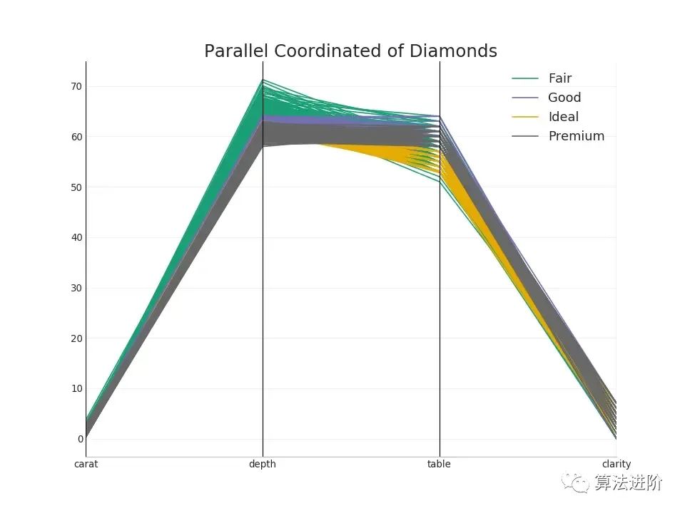 平行坐标有助于可视化某个特征是否有助于有效地隔离组。如果实现了隔离,该特征可能对于预测该群体非常有用。