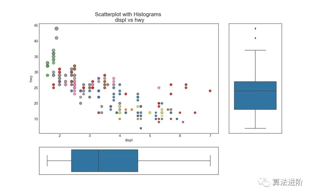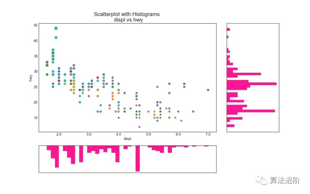 散点图是用于研究两个变量之间关系的经典且基本的图。如果数据中有多个组,您可能希望以不同的颜色可视化每个组。在 中matplotlib,您可以使用 方便地执行此操作。plt.scatterplot()