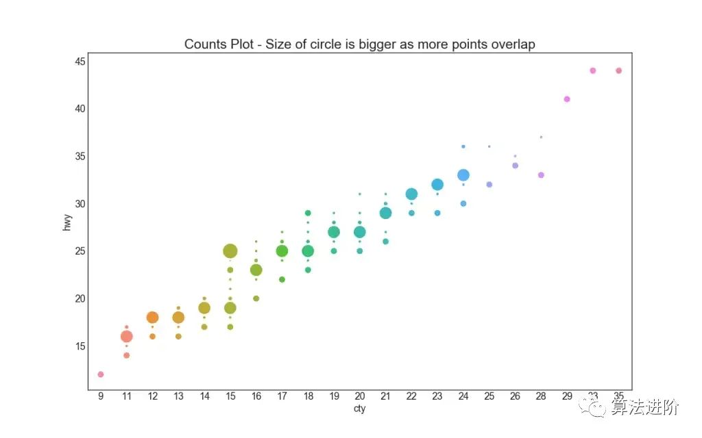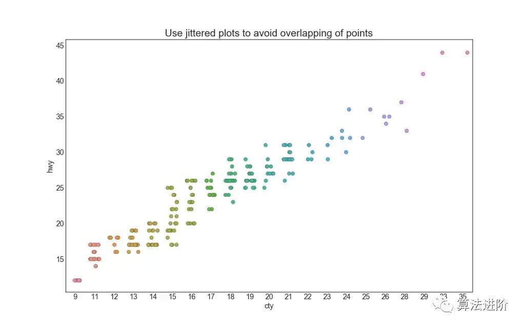 通常多个数据点具有完全相同的 X 和 Y 值。结果,多个点被绘制在彼此之上并隐藏。为了避免这种情况,请稍微抖动这些点,以便您可以直观地看到它们。使用seaborn 可以很方便地做到这一点。stripplot()