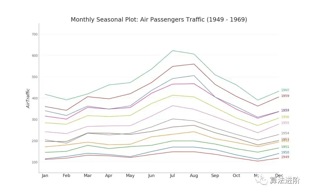 季节性图可用于比较上一季节(年/月/周等)同一天时间序列的表现。