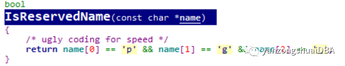 errdetail("Role names starting with \"pg_\" are reserved.")));2)可以看到创建角色时CreateRole调用的IsReservedName函数对此进行了检测,若返回true,则会报错。我们接着看下函数IsReservedName