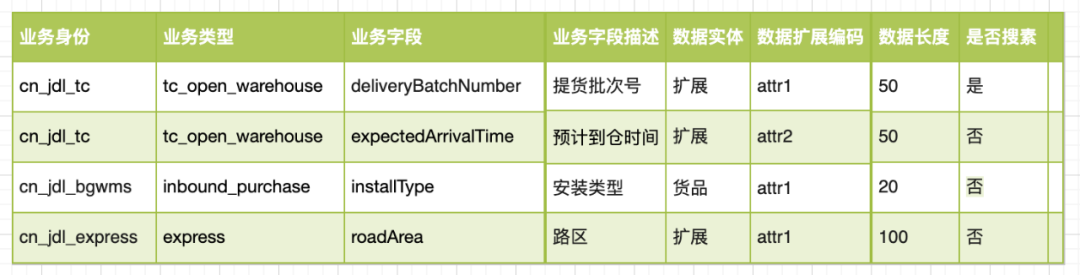 针对个性化业务,提供了一套可配置的数据库字段管理方案,通过开箱即用的一些设置,订单在提交、修改、查询时,可以根据业务身份+业务类型+业务字段找到不同的数据模型以及数据扩展编码,即找到存储到哪张表哪个字段。在每张表都预留N个扩展属性,同一个扩展属性,不同的业务身份+业务类型表示不同的含义,以此实现扩展存储。