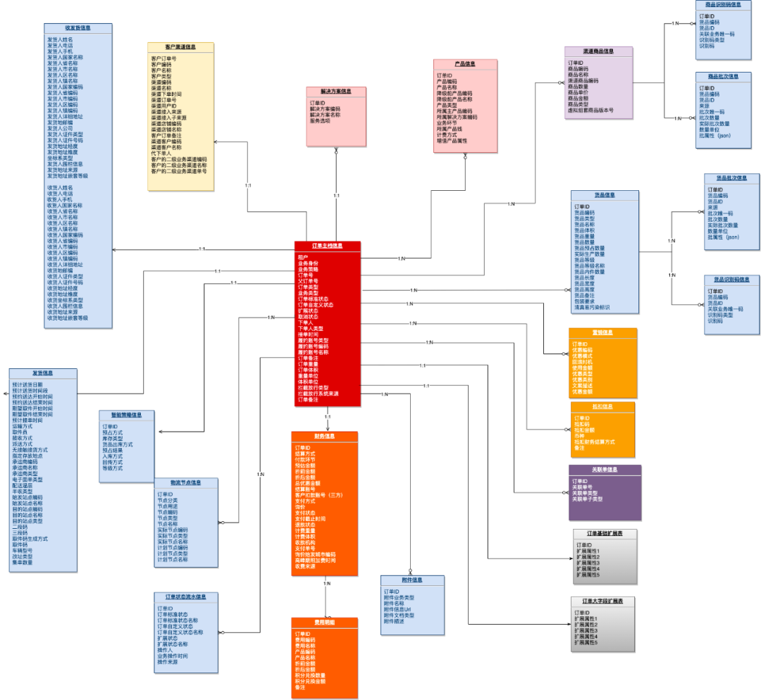 在订单模型设计上,基于统一业务属性、抽象通用模型、归纳共性实体的原则,将订单模型主要分成了订单的主档信息、订单的货品信息、订单的物流服务信息、订单的营销信息、订单的财务信息、订单的客户渠道信息、订单的收发货信息、订单的操作信息、订单的扩展信息等几类。