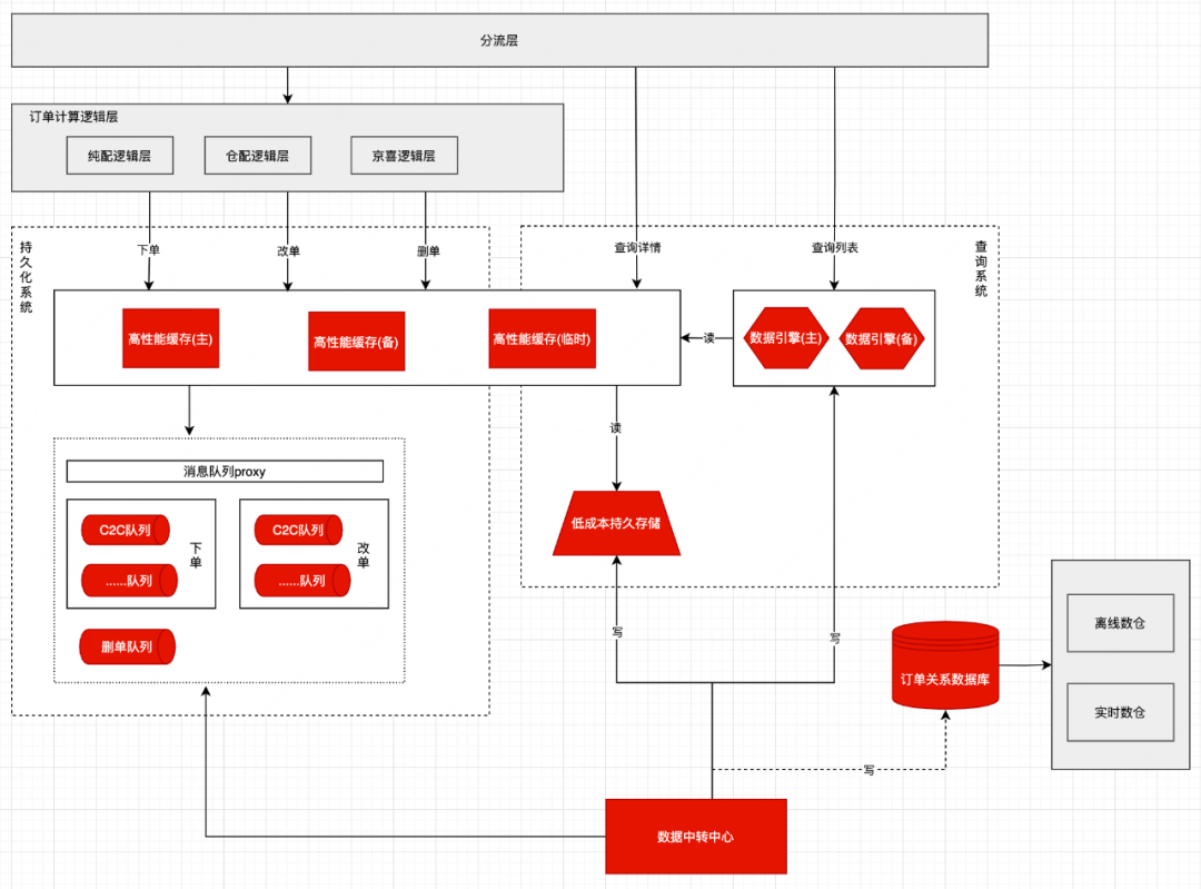 持久化系统:用于支撑接单、订单修改、订单取消、订单删除等数据持久化。