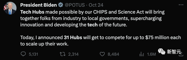 在美国当地时间10月24日,白宫宣布美国将设立31个区域科技中心(Tech Hub),发展 AI、芯片、量子计算、生物技术等高科技技术,以提高美国在科技领域的竞争力。