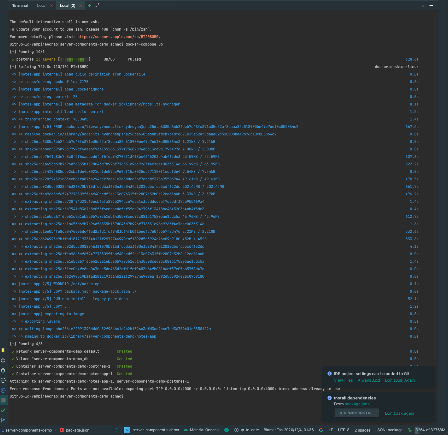 npm start此处再运行Docker,运行数据库环境
