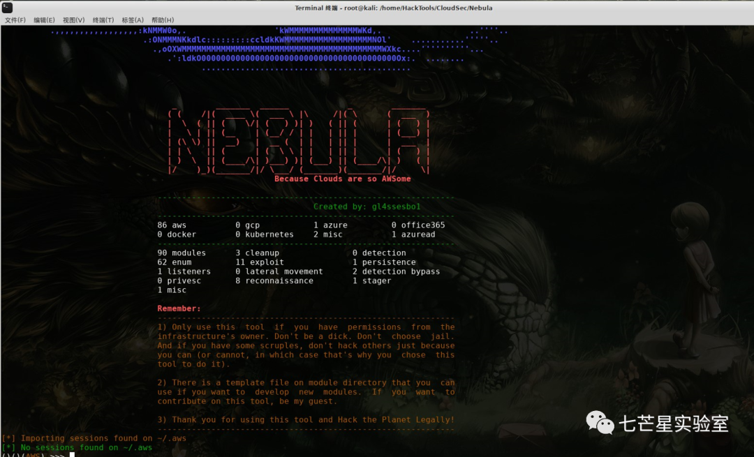 Nebula是一个云和DevOps渗透测试框架,它为每个提供者和每个功能构建了模块,截至 2021年4月,它仅涵盖AWS,但目前是一个正在进行的项目,有望继续发展以测试GCP、Azure、Kubernetes、Docker或Ansible、Terraform、Chef等自动化引擎