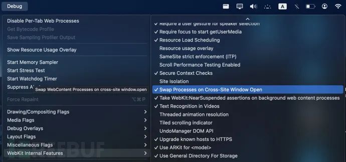 1. 打开终端并运行“defaults-write.com.apple.Safari IncludeInternalDebugMenu 1”以启用 Safari 的隐藏调试菜单; 2. 打开 Safari,进入新的可见调试菜单; 3. 选择 "WebKit 内部功能; 4. 滚动并激活 "跨站窗口打开时交换进程"。