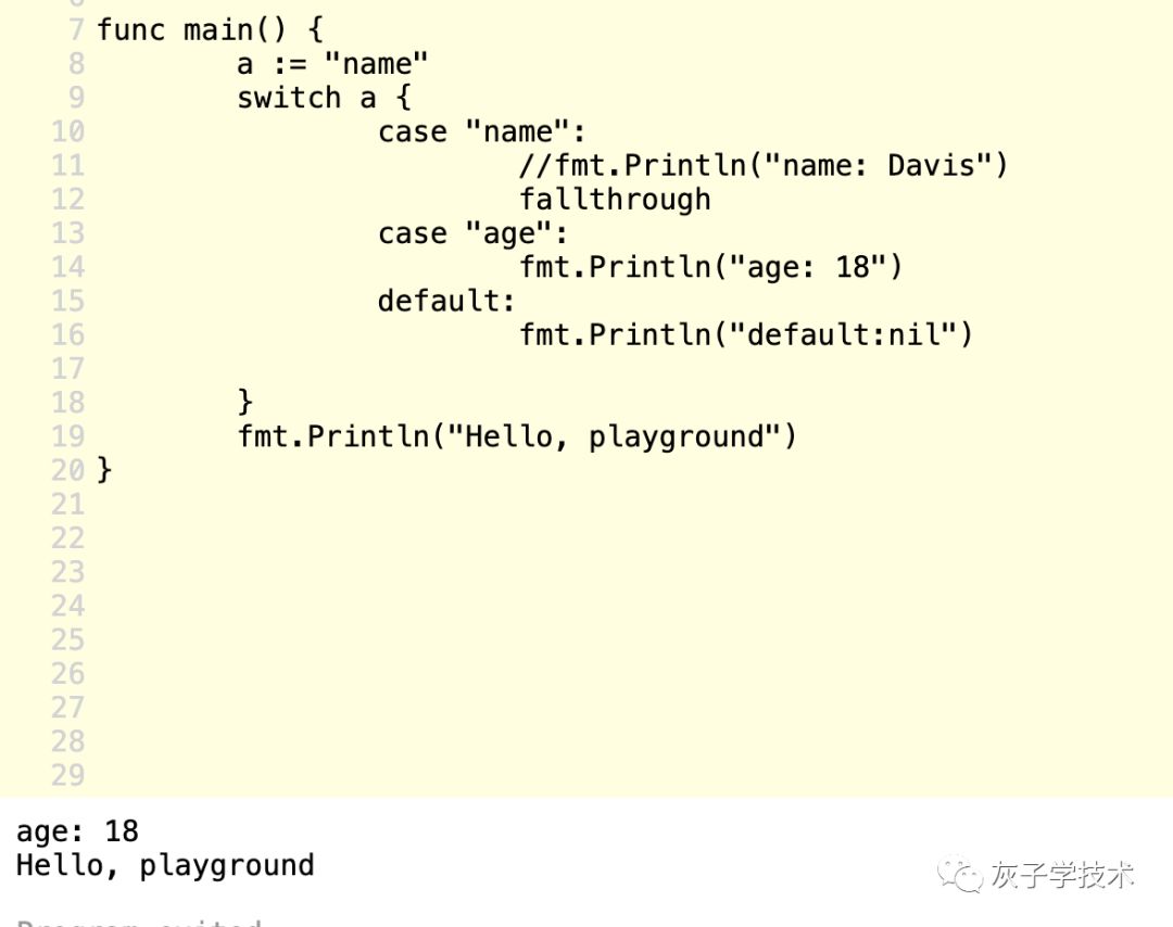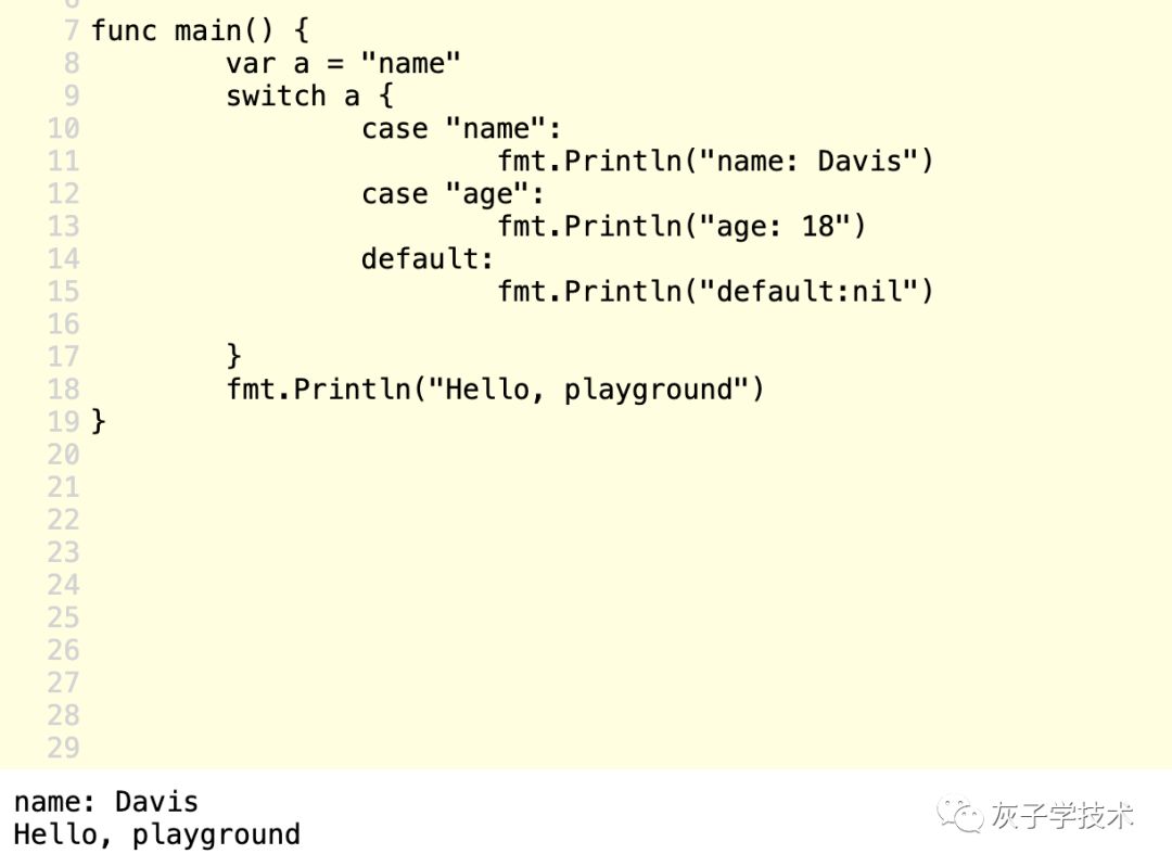 1.先从写法上面,C++中,switch之后紧跟括号,Go后面没有括号,甚至可以省略。