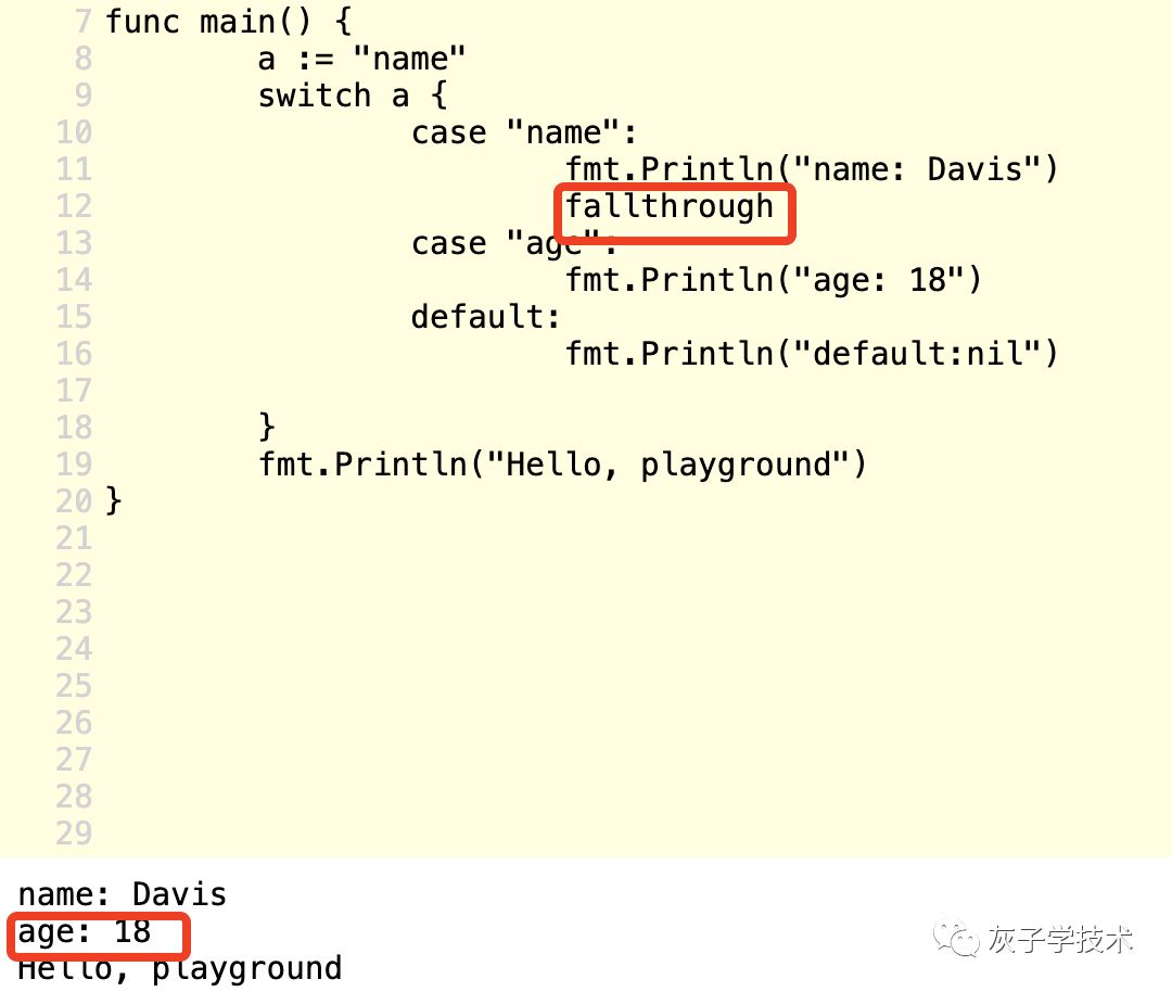 3.C++中case后面一般要跟break来终止当前case,否则继续执行下一个case的代码。Go语言中,默认没有break,会直接结束当前case,如果想要于下一个case合并,需要新增fallthrough关键字。