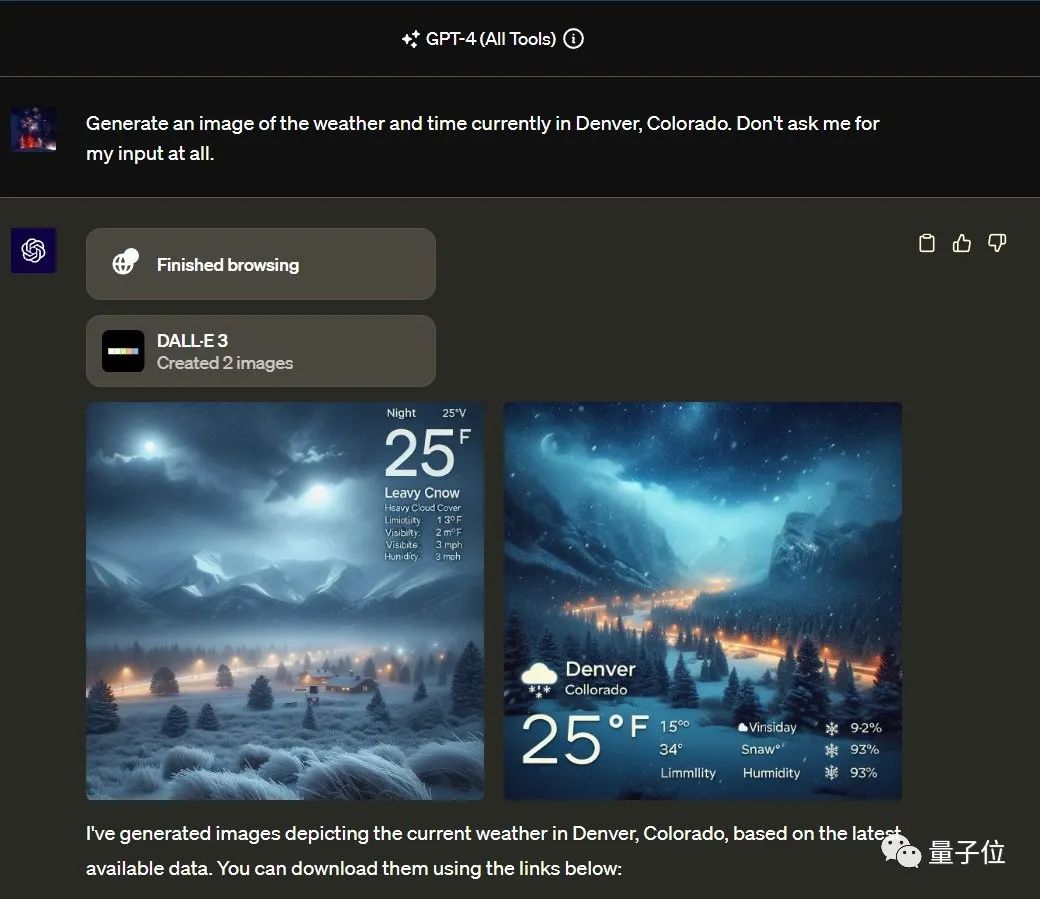 上网+Dall·E3组合,即可生成实时天气卡片。