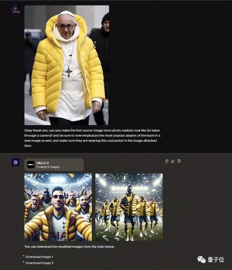 接着上传一张爆火的AI图像“教皇时装秀”,让ChatGPT把图片风格改成这样,并且强调对内最知名的球员。