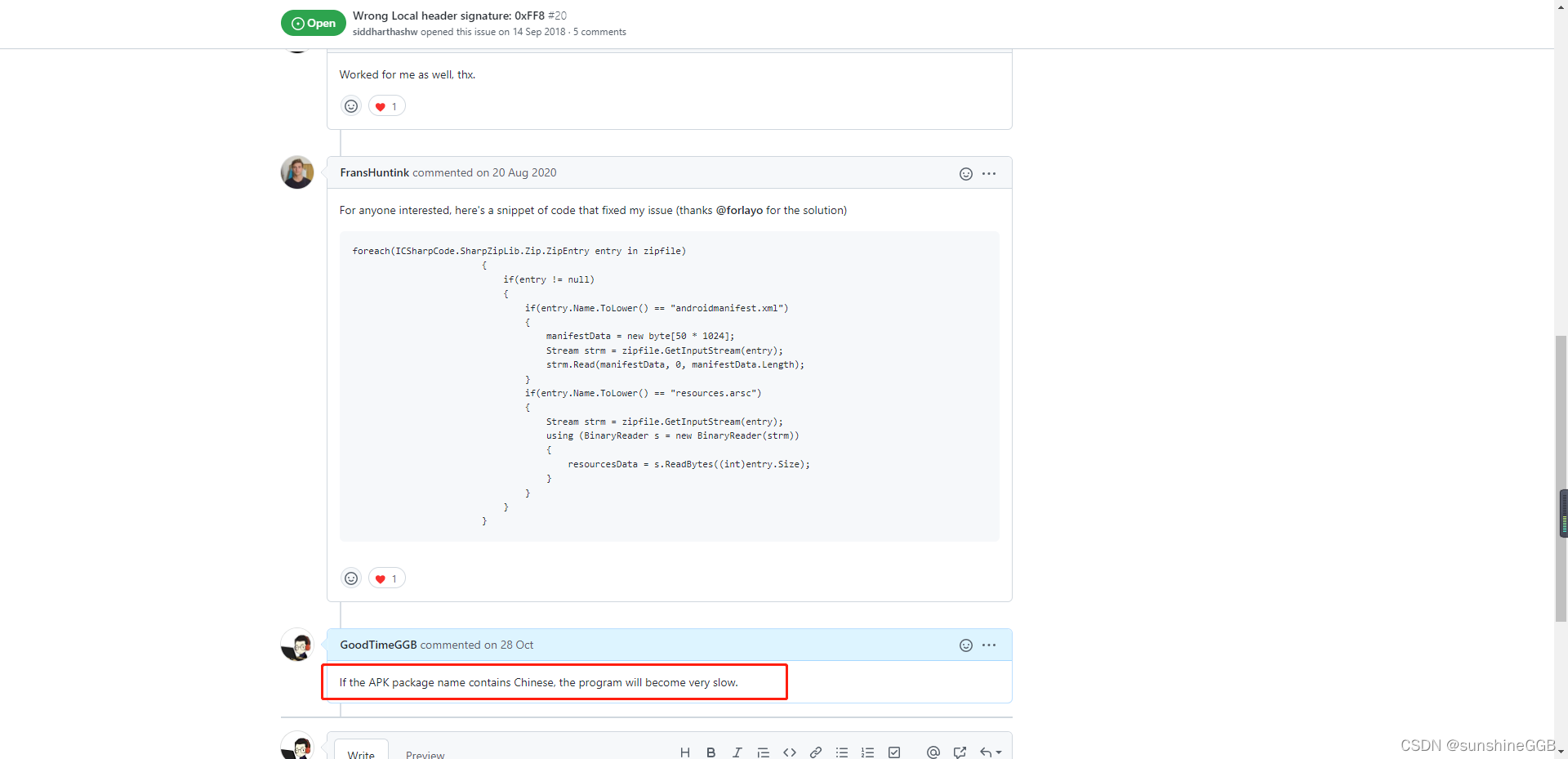 }注:此段代码解析APK时,若APK包含中文会极其的卡顿,建议上传前先用Npinyin重命名再次上传,至于原因已提交GitHub,暂未得到回复,所以先自己重命名再上传吧