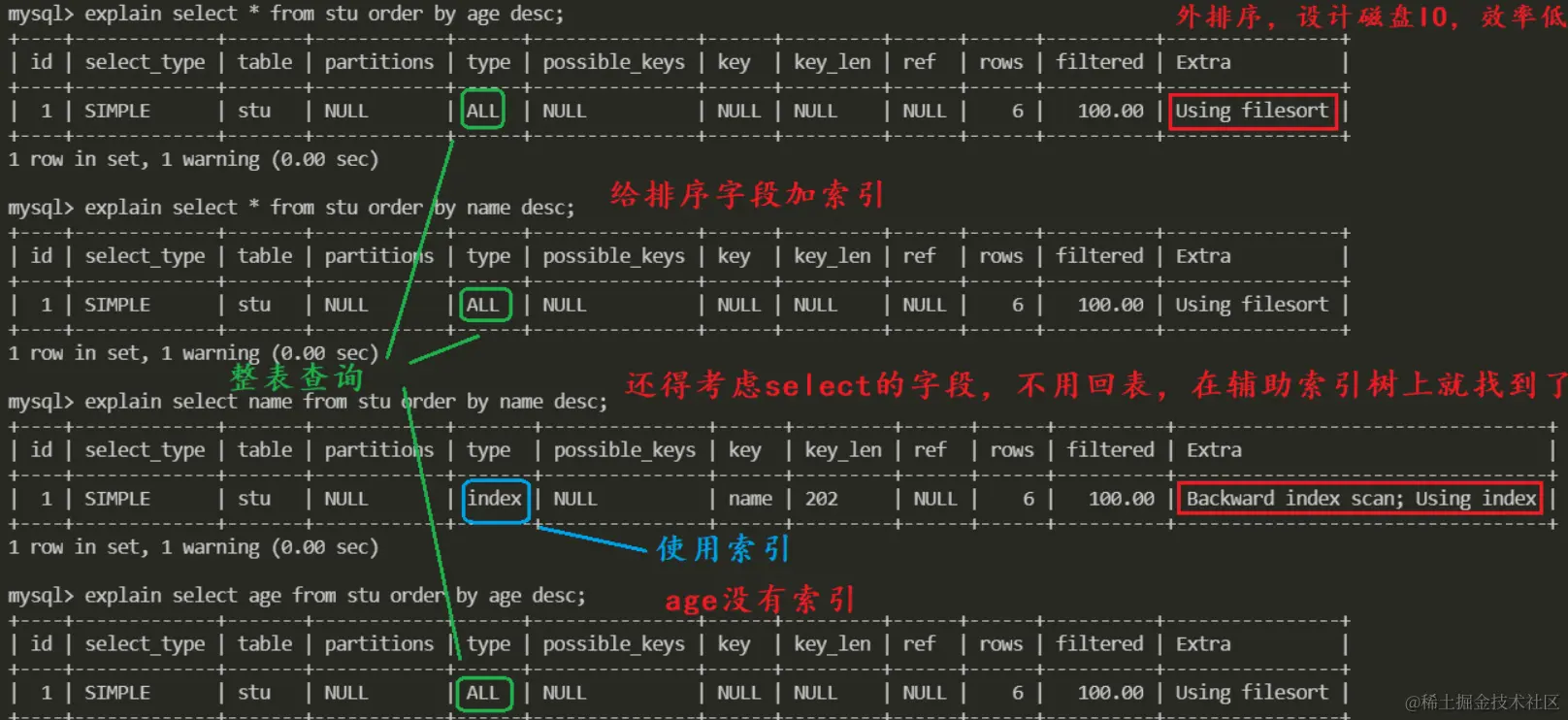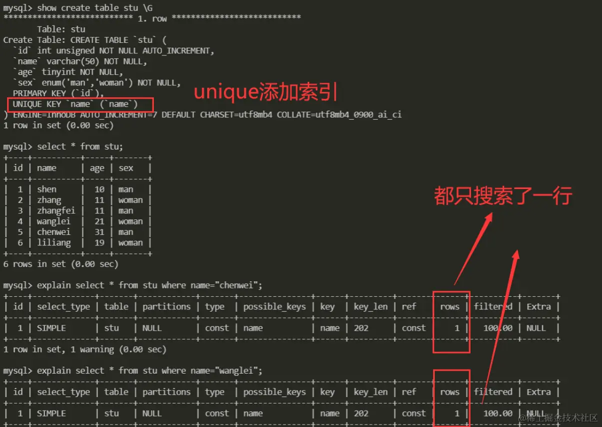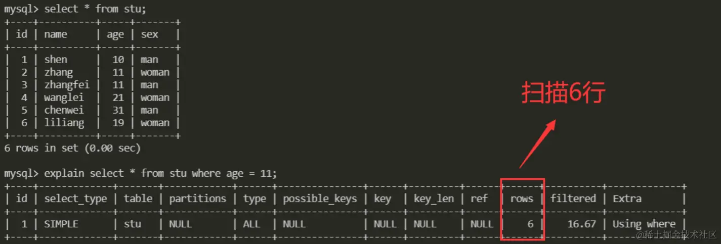 由于age没有添加索引,所以数据库引擎做的是整表搜索,效率很低