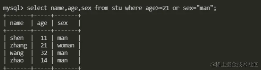select * from stu where (age between 18 and 24) and sex="man" order by age desc, id desc; -- 先年龄降序,年龄一样则按照id降序
