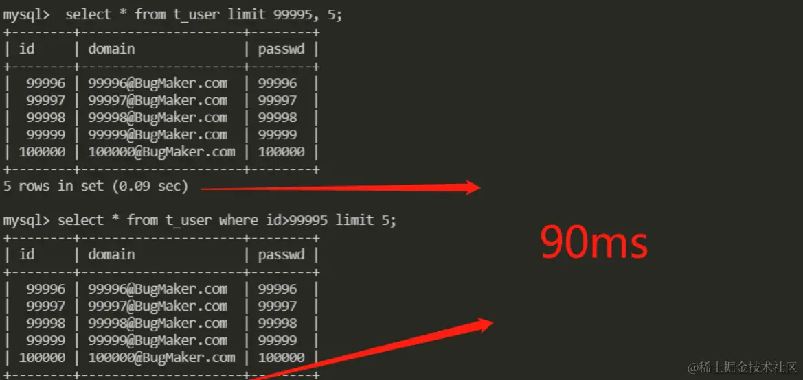 我们若使用如下SQL查询,就会有前几页查询快,后几页查询慢的问题