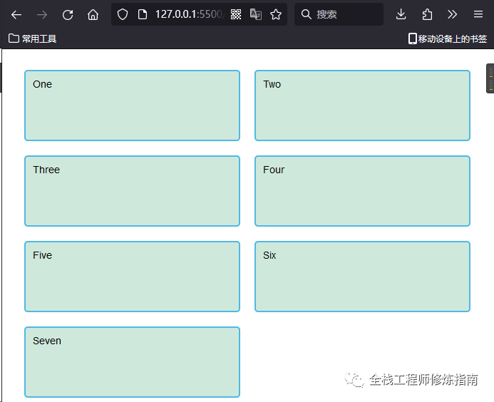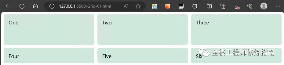 示例 1.使用 grid-template-areas 属性放置元素,来区别使用grid-column、grid-row布局网格方法, 此处仍然使用上一个示例文件中的html内容。