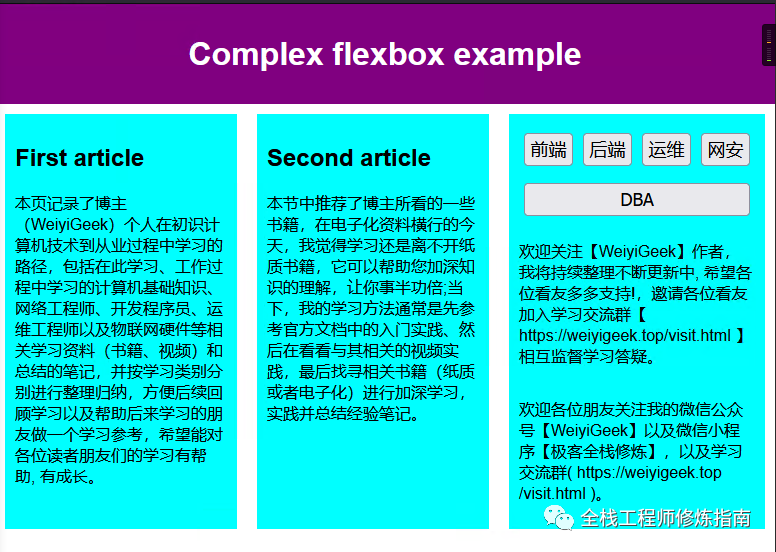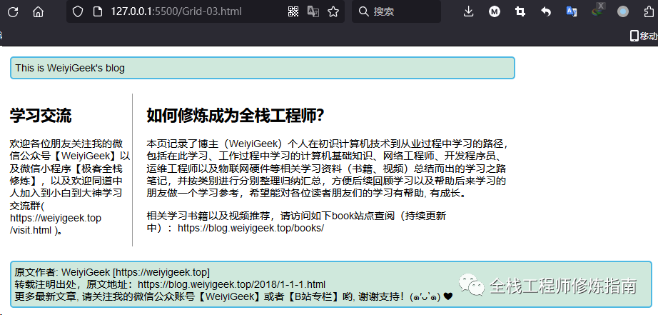 描述: 前面相信大家已经跟着【WeiyiGeek】作者一起学习了CSS基础知识了,并且了解了盒子模型、以及元素的定位浮动方面的知识。现在我们在此基础上继续深入学习CSS布局,它是学习CSS之路上一个重点,是在进行前端开发时常常使用到的,所以说我们需要认真学习,若有不懂的地方可以在文章末尾,以及作者交流群【在公众号回复微信交流群】进行留言交流。