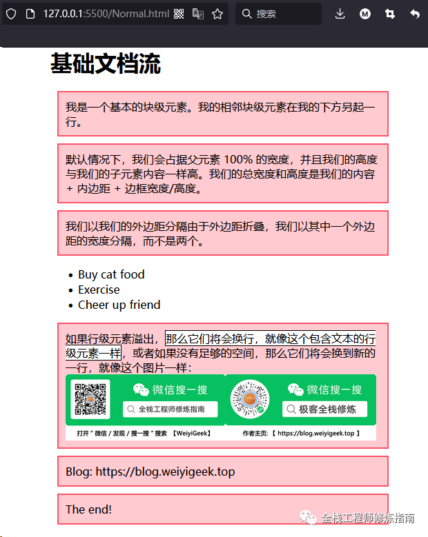 总之,当你使用 css 创建一个布局时,此时默认的正常布局流将会被改变,通常使用 display、float、position 、表格、多列布局样式设置会覆盖默认的布局, 这些我们在上一章【5.CSS基础知识之定位浮动学习笔记】,讲解过此处不再过多的陈述。