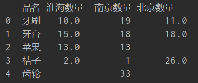 # 按照品名纵相拼接df1、df2、df3