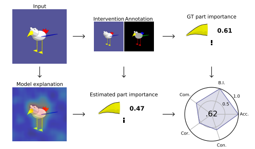 首先,它使得可以在部分层面上分析解释,这比现有方法在像素级别上评估更接近人类理解。