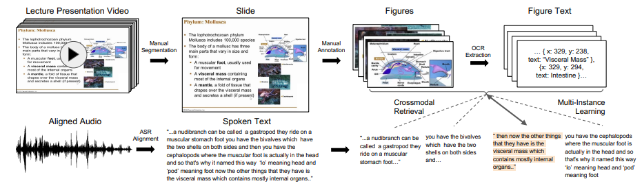Lecture Presentations Multimodal (LPM) Dataset是一个大规模的数据集,旨在作为测试视觉与语言模型在多模态理解教育视频方面能力的基准。该数据集包含了对齐的幻灯片和口头语言,涵盖了180多小时的视频和9000多张幻灯片,涉及来自不同学科(如计算机科学、牙科、生物学)的10名讲师。