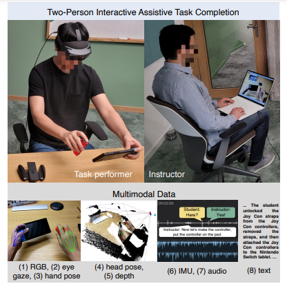 HoloAssist是一个大规模的主观视角人际互动数据集,旨在为开发可以在物理世界中与人类互动的智能代理提供支持。在这个数据集中,两名参与者共同完成物理操作任务。任务执行者戴着混合现实头戴式设备,可以捕捉到七个同步的数据流。任务指导者实时观看执行者的主观视角视频,并通过口头指导来引导他们完成任务。HoloAssist 的数据采集时间长达 169 个小时,采集对象包括 350 对不同的指导者和执行者。